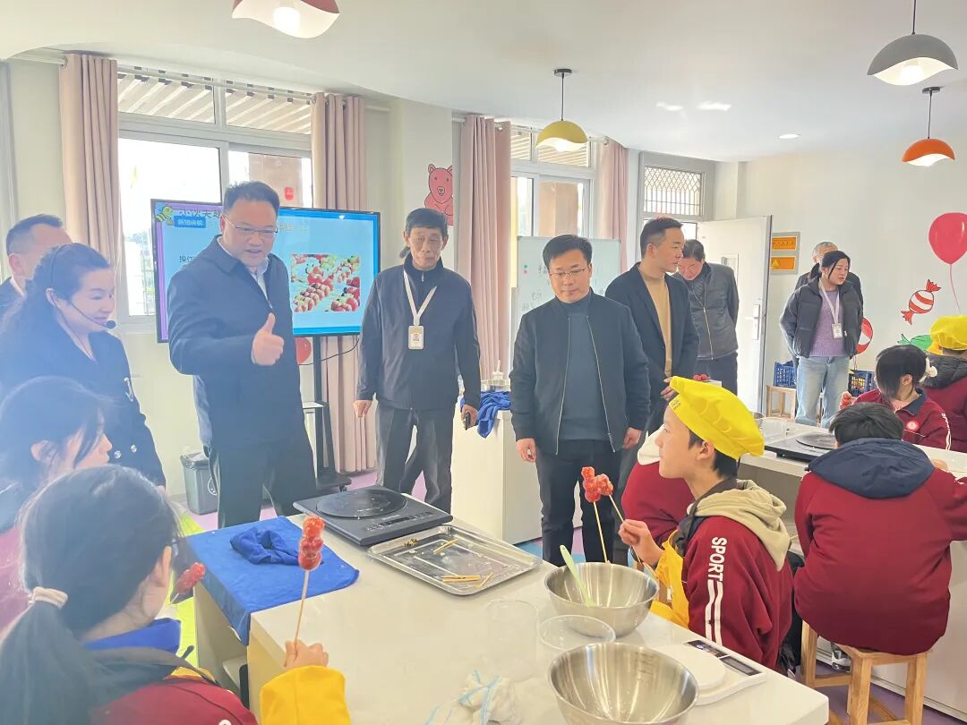 糖果工坊,此时实验中学的学生们正在品尝自己制作的糖葫芦,童部长