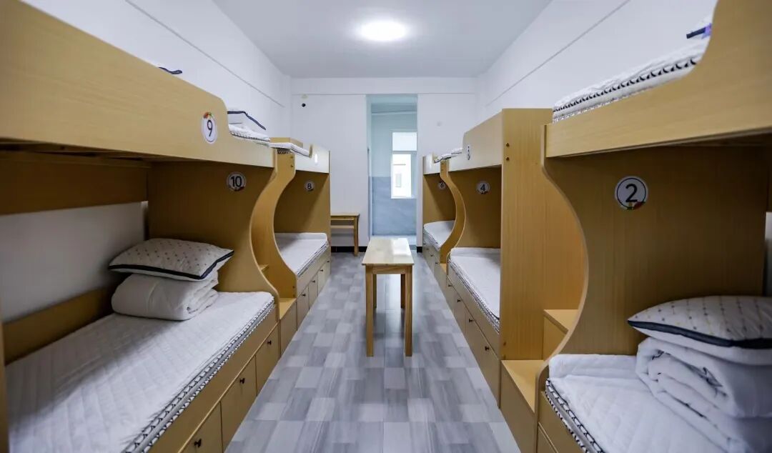 走进寝室,查看学生住宿情况,要求基地负责同志要让学生住的舒服,有开水喝,有热水洗,来到基地要有家的温暖。