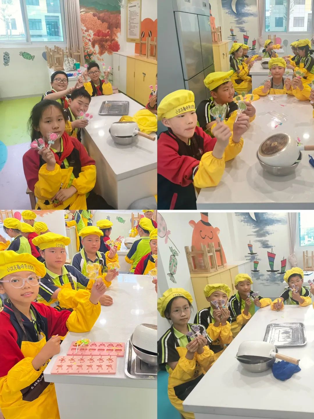 经过耐心的等待,各种口味棒棒糖终于新鲜出炉!看着自己亲手制作的棒棒糖,学生们的脸上洋溢着自豪与喜悦。有的学生迫不及待地剥开糖纸,轻轻咬上一口,丝滑的巧克力在口中化开,甜蜜的滋味瞬间蔓延开来;有的则将棒棒糖小心地收好,准备带回家与家人分享这份劳动成果。